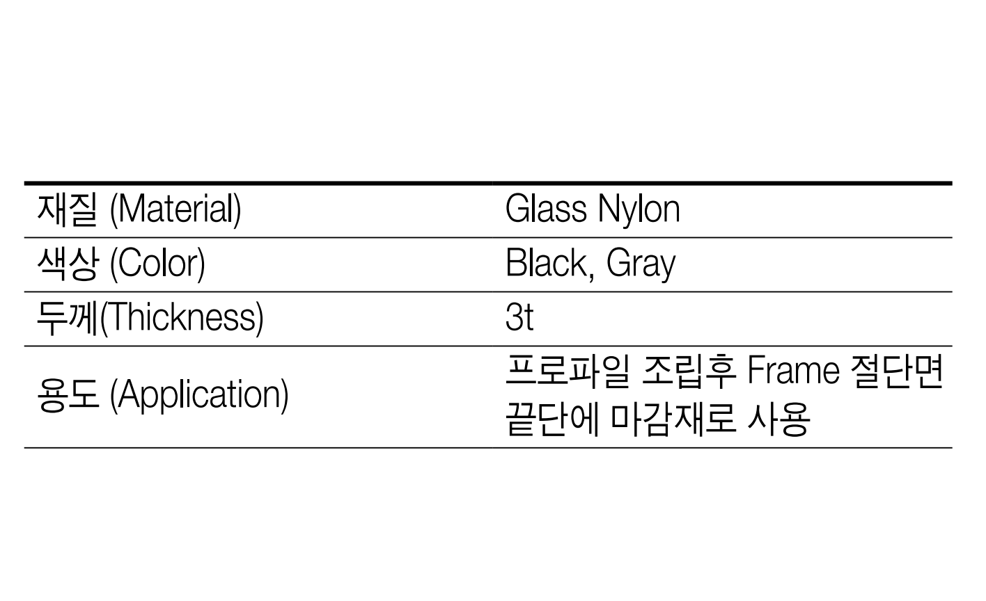 Được sử dụng làm vật liệu hoàn thiện ở phần cuối của bề mặt cắt khung sau khi lắp ráp cấu hình |