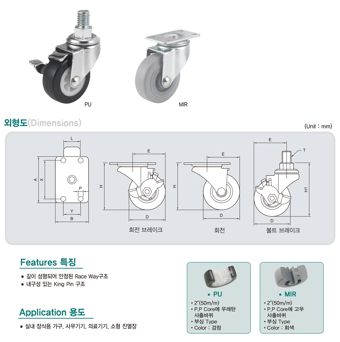 Thông số kỹ thuật chung của bánh xe đẩy nhẹ