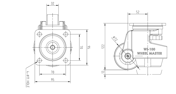 1,500Kg | Ø72 | 32 | 122 | 12 | 52 | 95×95 | 70×70 | Ø11 |