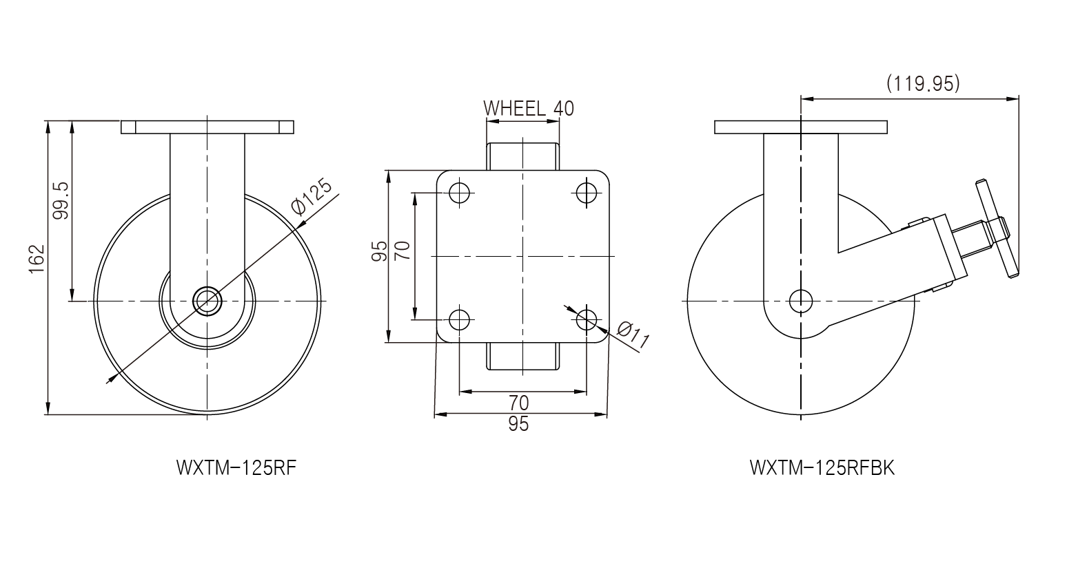 ● Bánh xe có độ ồn thấp, ma sát thấp, tải trọng trung bình và cao